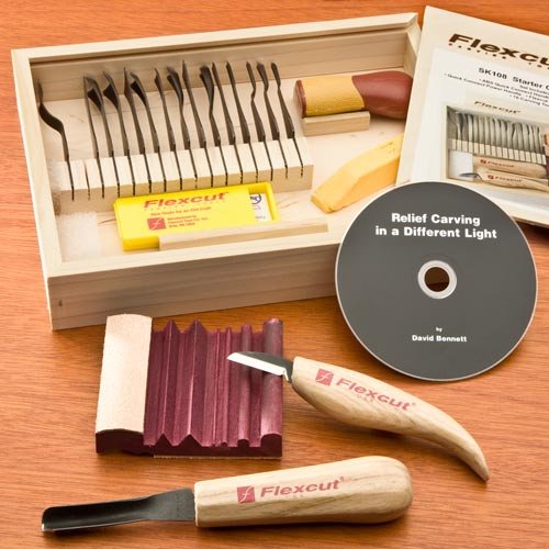 Start your carving career right with this whole beginner's set. It embodys artisan-quality, razor sharp instruments for palm, mallet and knife carving, plus upkeep gear and a how-to DVD. Everything together with two handles, 16 interchangeable blades and an all-purpose cutting knife is readily available in an attractive wooden storage field for easy organization.. Read more Flexcut 21-Piece Starter Set